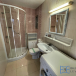 - Baño principal con moderna cabina de ducha de hidromasaje, azulejos tipo mosaico y zona de lavandería integrada.
